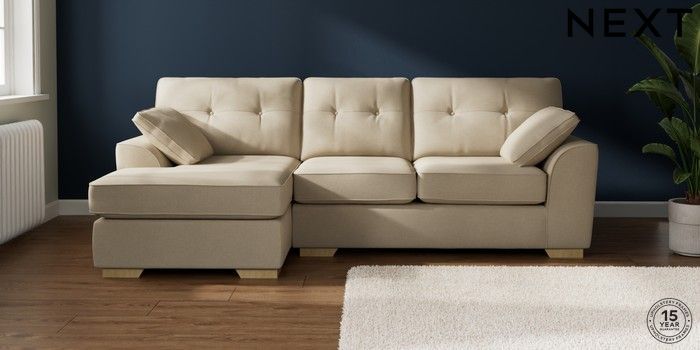 7.2.10 Stamford Buttoned Back Medium Sofa Chaise - Left Hand Natural Mix Light Natural Large Square Angle - Light | Made Click here to use our website with more accessibility support, for example screen readers