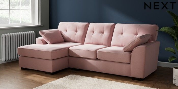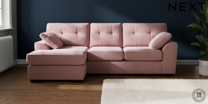 7.2.10 Stamford Buttoned Back Medium Sofa Chaise - Left Hand Natural Mix Light Rose Pink Large Square Angle - Dark | Made Click here to use our website with more accessibility support, for example screen readers
