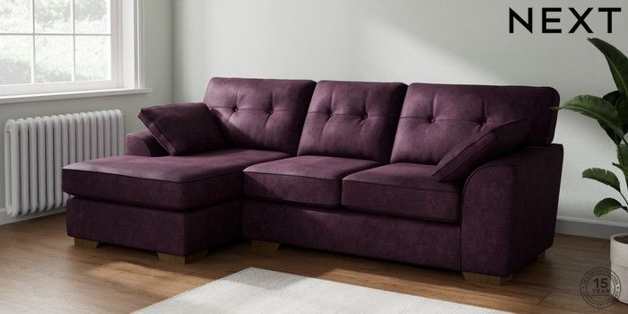 7.2.10 Stamford Buttoned Back Medium Sofa Chaise - Left Hand Plush Chenille Dark Plum Purple Large Square Angle - Mid | Made Click here to use our website with more accessibility support, for example screen readers