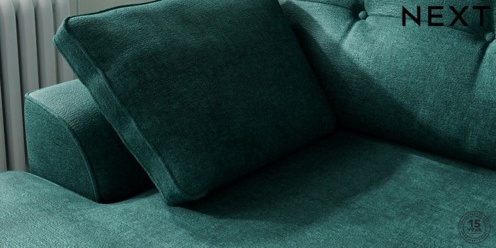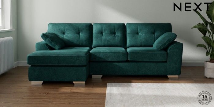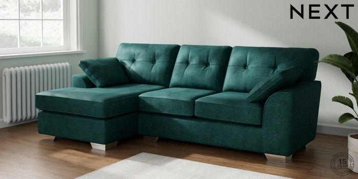 7.2.10 Stamford Buttoned Back Medium Sofa Chaise - Left Hand Plush Chenille Dark Teal Green Large Square Angle - Chrome Metal | Made Click here to use our website with more accessibility support, for example screen readers