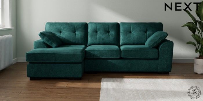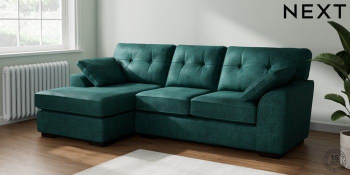 7.2.10 Stamford Buttoned Back Medium Sofa Chaise - Left Hand Plush Chenille Dark Teal Green Large Square Angle - Dark | Made Click here to use our website with more accessibility support, for example screen readers