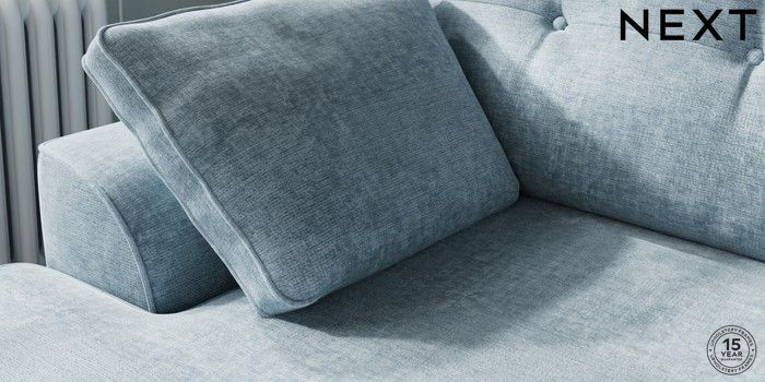 7.2.10 Stamford Buttoned Back Medium Sofa Chaise - Left Hand Plush Chenille Light Blue Large Square Angle - Chrome Metal | Made Click here to use our website with more accessibility support, for example screen readers