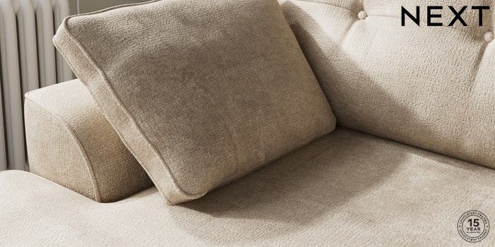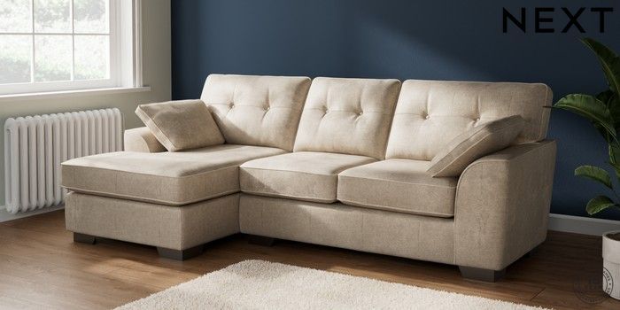 7.2.10 Stamford Buttoned Back Medium Sofa Chaise - Left Hand Plush Chenille Light Natural Large Square Angle - Gunmetal | Made Click here to use our website with more accessibility support, for example screen readers