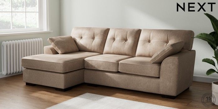 7.2.10 Stamford Buttoned Back Medium Sofa Chaise - Left Hand Plush Chenille Mid Natural Large Square Angle - Dark | Made Click here to use our website with more accessibility support, for example screen readers