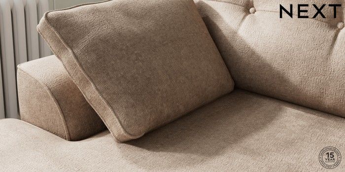 7.2.10 Stamford Buttoned Back Medium Sofa Chaise - Left Hand Plush Chenille Mid Natural Large Square Angle - Gunmetal | Made Click here to use our website with more accessibility support, for example screen readers