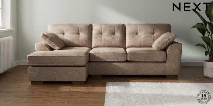 7.2.10 Stamford Buttoned Back Medium Sofa Chaise - Left Hand Plush Chenille Mid Natural Large Square Angle - Mid | Made Click here to use our website with more accessibility support, for example screen readers