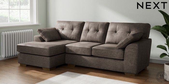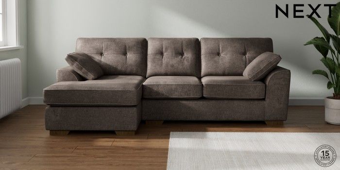 7.2.10 Stamford Buttoned Back Medium Sofa Chaise - Left Hand Plush Chenille Mink Brown Large Square Angle - Mid | Made Click here to use our website with more accessibility support, for example screen readers