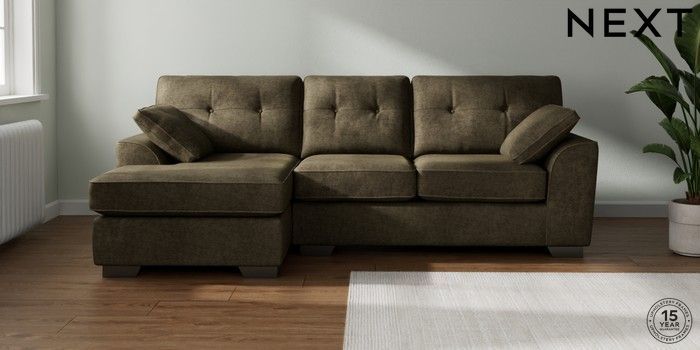 7.2.10 Stamford Buttoned Back Medium Sofa Chaise - Left Hand Plush Chenille Moss Green Large Square Angle - Gunmetal | Made Click here to use our website with more accessibility support, for example screen readers
