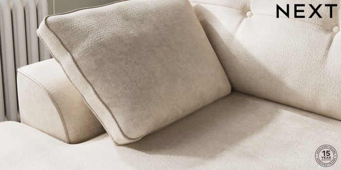 7.2.10 Stamford Buttoned Back Medium Sofa Chaise - Left Hand Plush Chenille Oyster Large Square Angle - Light | Made Click here to use our website with more accessibility support, for example screen readers