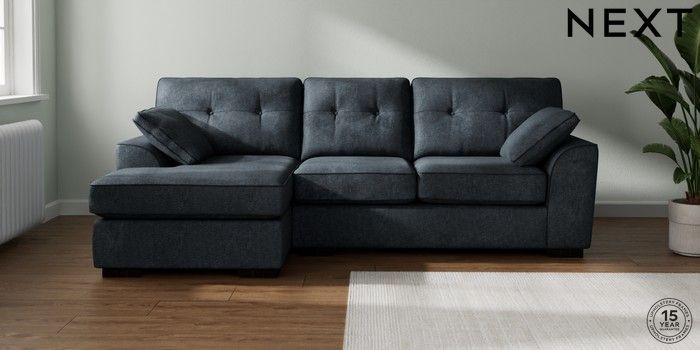 7.2.10 Stamford Buttoned Back Medium Sofa Chaise - Left Hand Plush Chenille Slate Blue Large Square Angle - Dark | Made Click here to use our website with more accessibility support, for example screen readers