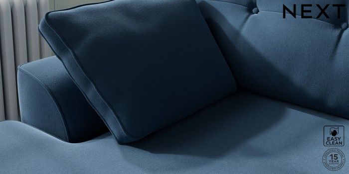7.2.10 Stamford Buttoned Back Medium Sofa Chaise - Left Hand Plush Velvet Easy Clean Airforce Blue Large Square Angle - Gunmetal | Made Click here to use our website with more accessibility support, for example screen readers