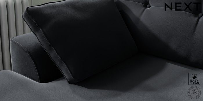 7.2.10 Stamford Buttoned Back Medium Sofa Chaise - Left Hand Plush Velvet Easy Clean Charcoal Grey Large Square Angle - Chrome Metal | Made Click here to use our website with more accessibility support, for example screen readers