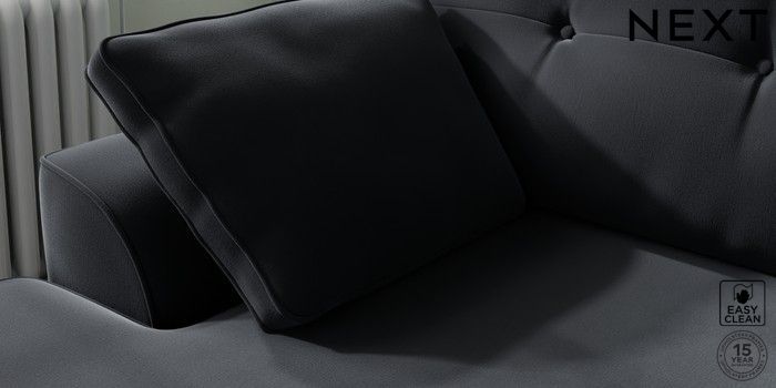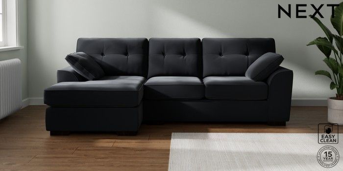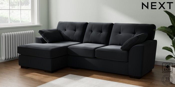 7.2.10 Stamford Buttoned Back Medium Sofa Chaise - Left Hand Plush Velvet Easy Clean Charcoal Grey Large Square Angle - Dark | Made Click here to use our website with more accessibility support, for example screen readers