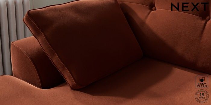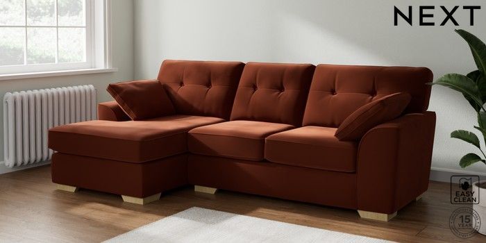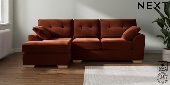 7.2.10 Stamford Buttoned Back Medium Sofa Chaise - Left Hand Plush Velvet Easy Clean Ginger Orange Large Square Angle - Light | Made Click here to use our website with more accessibility support, for example screen readers