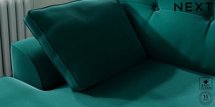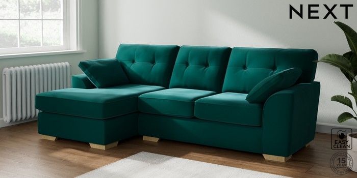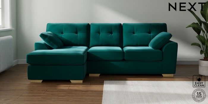 7.2.10 Stamford Buttoned Back Medium Sofa Chaise - Left Hand Plush Velvet Easy Clean Juniper Green Large Square Angle - Light | Made Click here to use our website with more accessibility support, for example screen readers