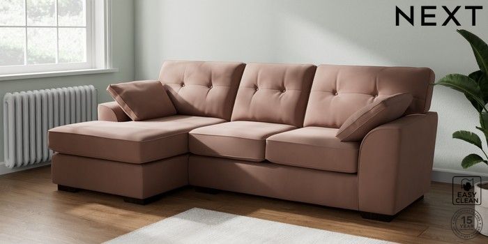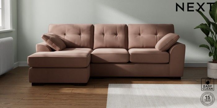 7.2.10 Stamford Buttoned Back Medium Sofa Chaise - Left Hand Plush Velvet Easy Clean Mid Natural Large Square Angle - Dark | Made Click here to use our website with more accessibility support, for example screen readers