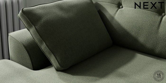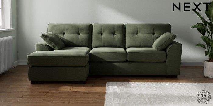 7.2.10 Stamford Buttoned Back Medium Sofa Chaise - Left Hand Relaxed Linen Look Dark Green Large Square Angle - Dark | Made Click here to use our website with more accessibility support, for example screen readers
