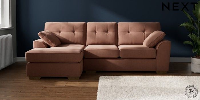 7.2.10 Stamford Buttoned Back Medium Sofa Chaise - Left Hand Relaxed Linen Look Light Rust Brown Large Square Angle - Mid | Made Click here to use our website with more accessibility support, for example screen readers