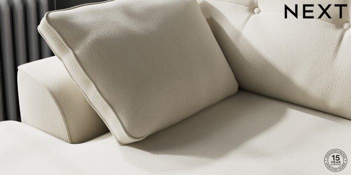 7.2.10 Stamford Buttoned Back Medium Sofa Chaise - Left Hand Relaxed Linen Look Oyster Large Square Angle - Chrome Metal | Made Click here to use our website with more accessibility support, for example screen readers