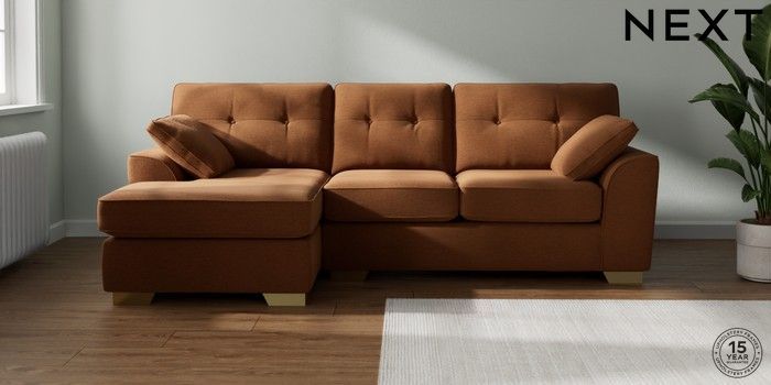 7.2.10 Stamford Buttoned Back Medium Sofa Chaise - Left Hand Ripple Chenille Mid Rust Brown Large Square Angle - Brushed Brass | Made Click here to use our website with more accessibility support, for example screen readers