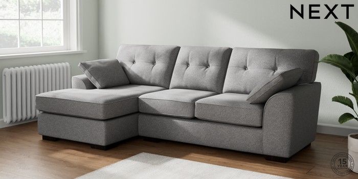 7.2.10 Stamford Buttoned Back Medium Sofa Chaise - Left Hand Studio Chenille Mid Grey Large Square Angle - Dark | Made Click here to use our website with more accessibility support, for example screen readers