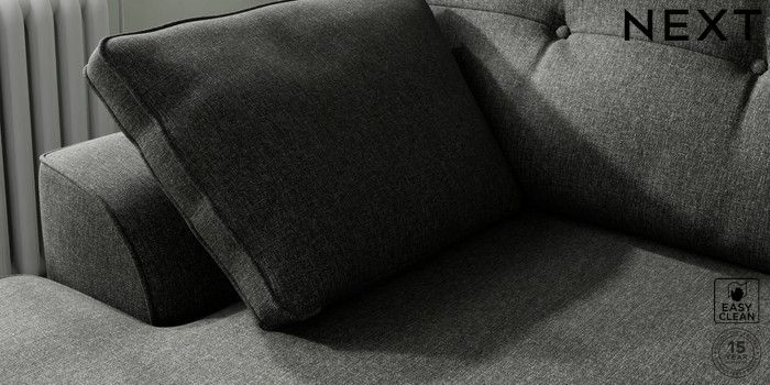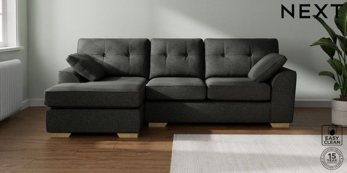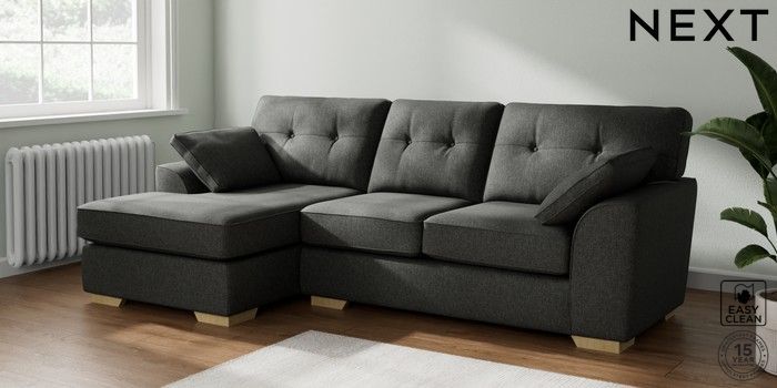 7.2.10 Stamford Buttoned Back Medium Sofa Chaise - Left Hand Tweedy Blend Easy Clean Charcoal Grey Large Square Angle - Light | Made Click here to use our website with more accessibility support, for example screen readers
