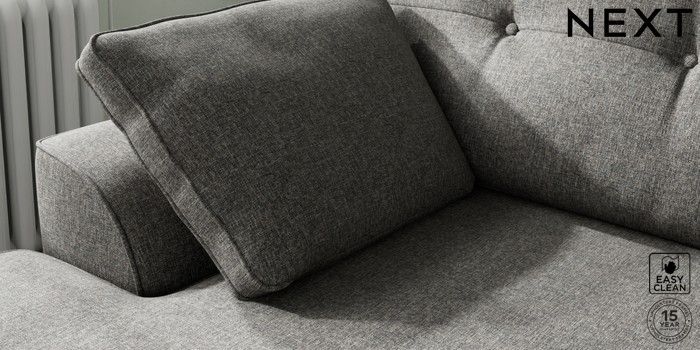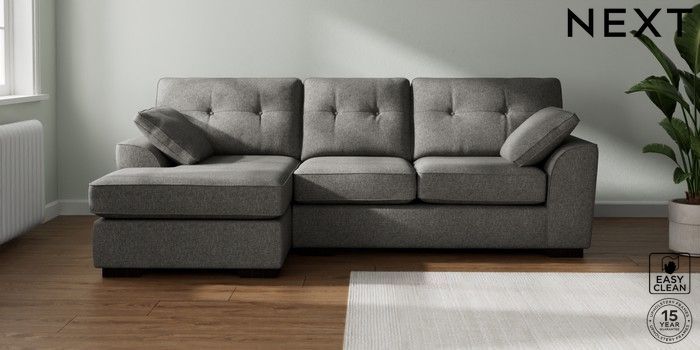 7.2.10 Stamford Buttoned Back Medium Sofa Chaise - Left Hand Tweedy Blend Easy Clean Dark Grey Large Square Angle - Dark | Made Click here to use our website with more accessibility support, for example screen readers