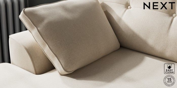 7.2.10 Stamford Buttoned Back Medium Sofa Chaise - Left Hand Tweedy Blend Easy Clean Oyster Large Square Angle - Mid | Made Click here to use our website with more accessibility support, for example screen readers