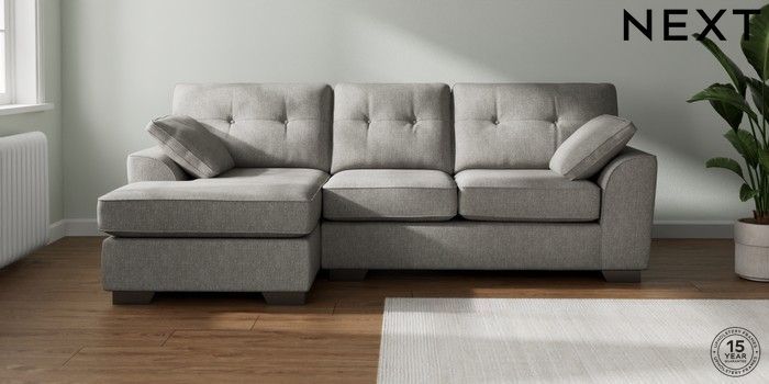7.2.10 Stamford Buttoned Back Medium Sofa Chaise - Left Hand Tweedy Chenille Mid Grey Large Square Angle - Gunmetal | Made Click here to use our website with more accessibility support, for example screen readers