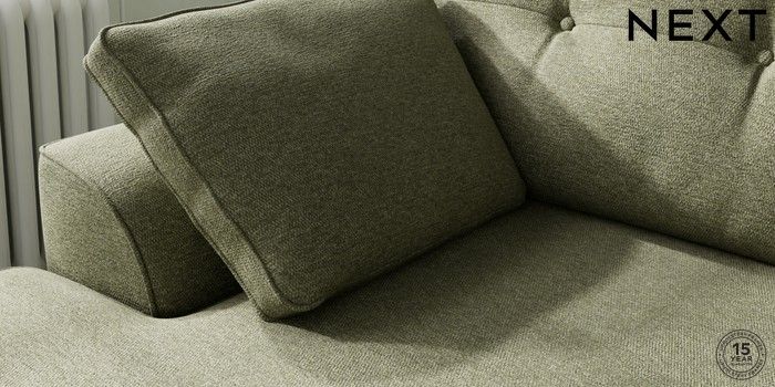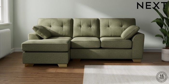 7.2.10 Stamford Buttoned Back Medium Sofa Chaise - Left Hand Tweedy Chenille Mid Moss Green Large Square Angle - Brushed Brass | Made Click here to use our website with more accessibility support, for example screen readers