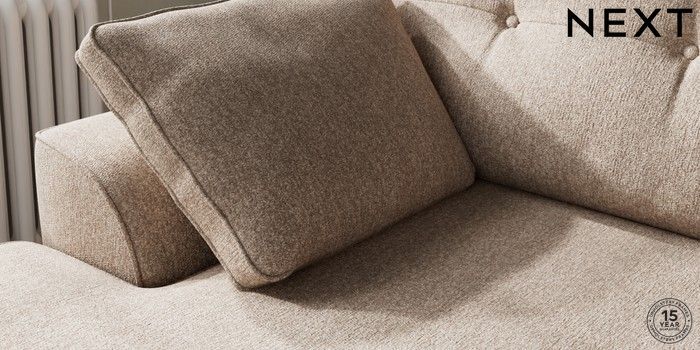 7.2.10 Stamford Buttoned Back Medium Sofa Chaise - Left Hand Tweedy Chenille Mid Natural Large Square Angle - Chrome Metal | Made Click here to use our website with more accessibility support, for example screen readers
