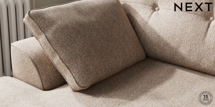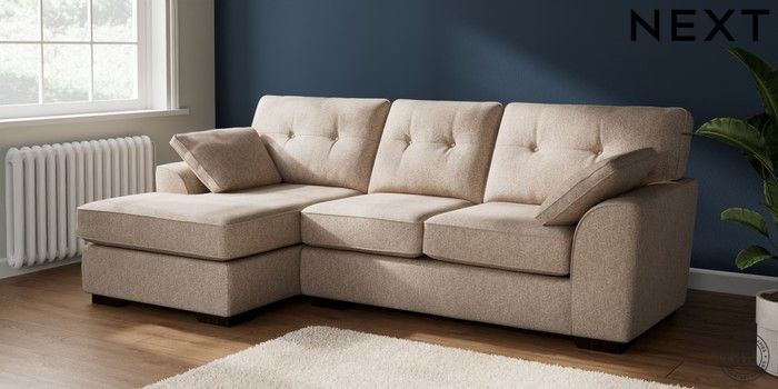7.2.10 Stamford Buttoned Back Medium Sofa Chaise - Left Hand Tweedy Chenille Mid Natural Large Square Angle - Dark | Made Click here to use our website with more accessibility support, for example screen readers