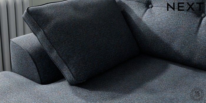 7.2.10 Stamford Buttoned Back Medium Sofa Chaise - Left Hand Tweedy Chenille Navy Blue Large Square Angle - Gunmetal | Made Click here to use our website with more accessibility support, for example screen readers