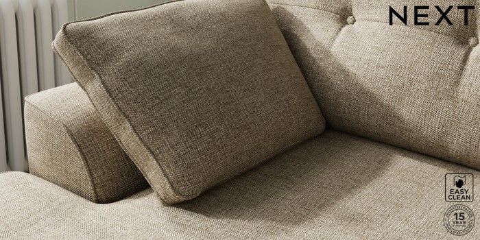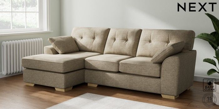 7.2.10 Stamford Buttoned Back Medium Sofa Chaise - Left Hand Woven Chenille Easy Clean Mid Natural Large Square Angle - Light | Made Click here to use our website with more accessibility support, for example screen readers