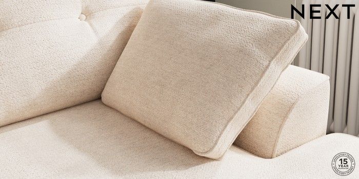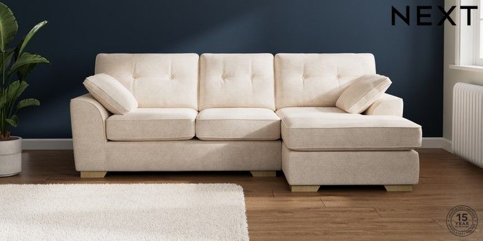 7.2.10 Stamford Buttoned Back Medium Sofa Chaise - Right Hand Boucle Chenille Oyster Large Square Angle - Light | Made Click here to use our website with more accessibility support, for example screen readers