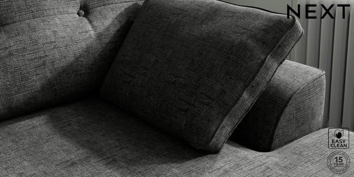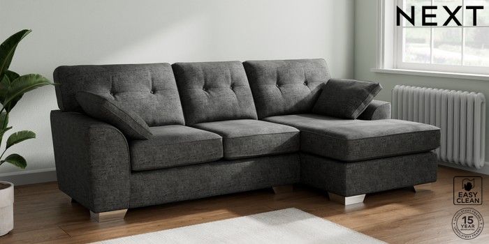 7.2.10 Stamford Buttoned Back Medium Sofa Chaise - Right Hand Boucle Weave Easy Clean Charcoal Grey Large Square Angle - Chrome Metal | Made Click here to use our website with more accessibility support, for example screen readers