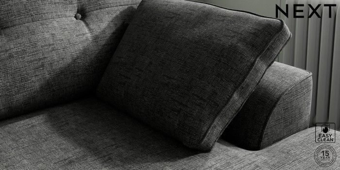 7.2.10 Stamford Buttoned Back Medium Sofa Chaise - Right Hand Boucle Weave Easy Clean Charcoal Grey Large Square Angle - Dark | Made Click here to use our website with more accessibility support, for example screen readers
