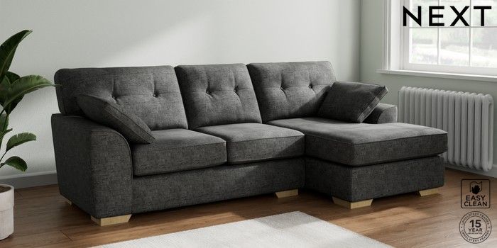 7.2.10 Stamford Buttoned Back Medium Sofa Chaise - Right Hand Boucle Weave Easy Clean Charcoal Grey Large Square Angle - Light | Made Click here to use our website with more accessibility support, for example screen readers