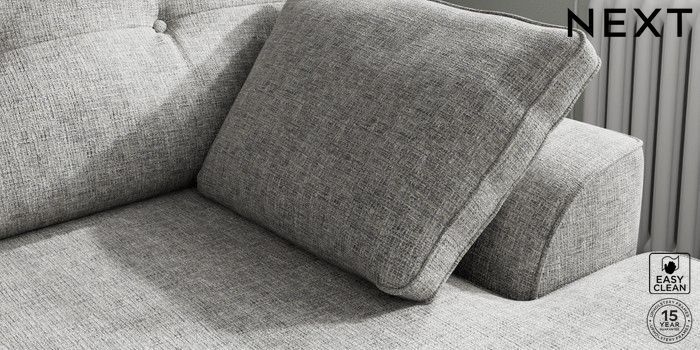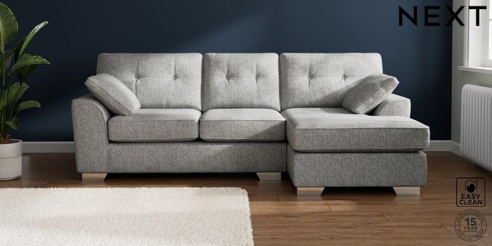 7.2.10 Stamford Buttoned Back Medium Sofa Chaise - Right Hand Chunky Boucle Easy Clean Light Grey Large Square Angle - Chrome Metal | Made Click here to use our website with more accessibility support, for example screen readers