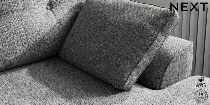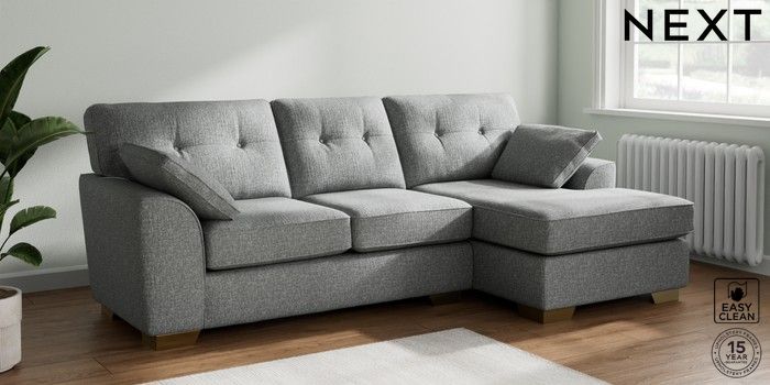 7.2.10 Stamford Buttoned Back Medium Sofa Chaise - Right Hand Chunky Boucle Easy Clean Mid Grey Large Square Angle - Brushed Brass | Made Click here to use our website with more accessibility support, for example screen readers