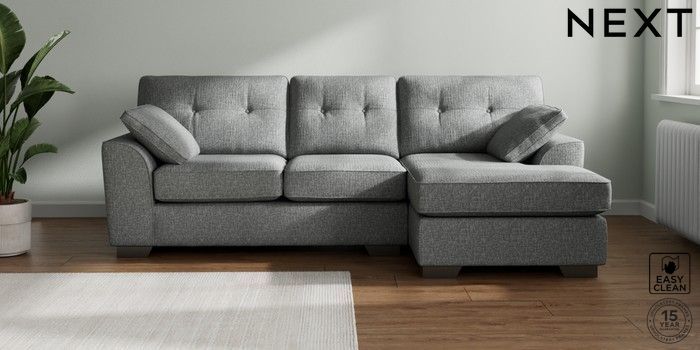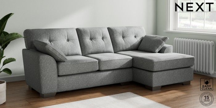 7.2.10 Stamford Buttoned Back Medium Sofa Chaise - Right Hand Chunky Boucle Easy Clean Mid Grey Large Square Angle - Gunmetal | Made Click here to use our website with more accessibility support, for example screen readers