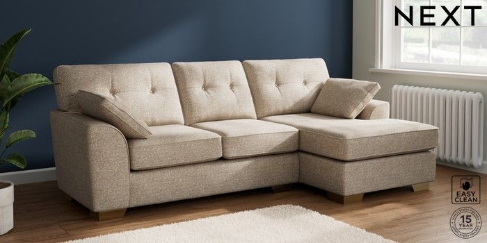 7.2.10 Stamford Buttoned Back Medium Sofa Chaise - Right Hand Chunky Boucle Easy Clean Mid Natural Large Square Angle - Brushed Brass | Made Click here to use our website with more accessibility support, for example screen readers