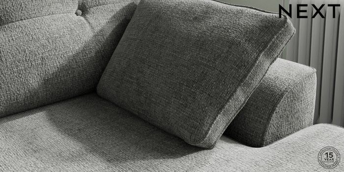 7.2.10 Stamford Buttoned Back Medium Sofa Chaise - Right Hand Chunky Chenille Dark Grey Large Square Angle - Brushed Brass | Made Click here to use our website with more accessibility support, for example screen readers