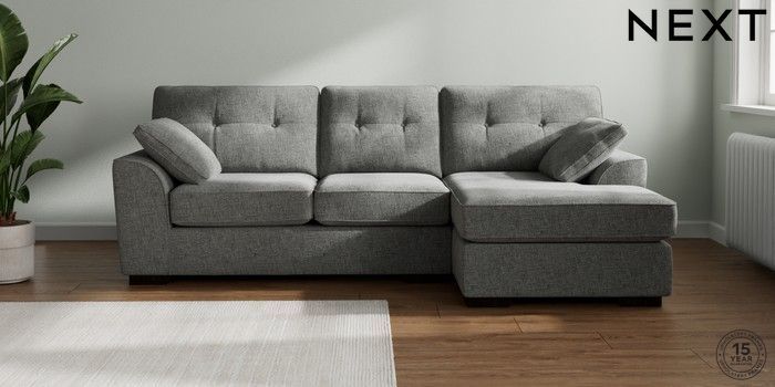 7.2.10 Stamford Buttoned Back Medium Sofa Chaise - Right Hand Chunky Chenille Dark Grey Large Square Angle - Dark | Made Click here to use our website with more accessibility support, for example screen readers