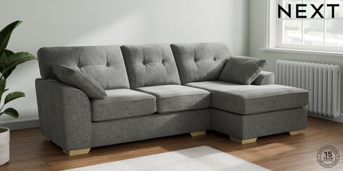 7.2.10 Stamford Buttoned Back Medium Sofa Chaise - Right Hand Chunky Chenille Dark Grey Large Square Angle - Light | Made Click here to use our website with more accessibility support, for example screen readers