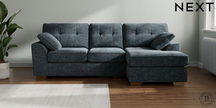 7.2.10 Stamford Buttoned Back Medium Sofa Chaise - Right Hand Chunky Chenille Dark Navy Blue Large Square Angle - Brushed Brass | Made Click here to use our website with more accessibility support, for example screen readers