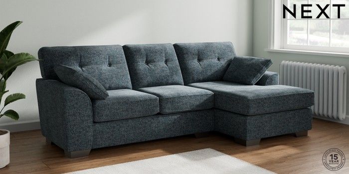 7.2.10 Stamford Buttoned Back Medium Sofa Chaise - Right Hand Chunky Chenille Dark Navy Blue Large Square Angle - Gunmetal | Made Click here to use our website with more accessibility support, for example screen readers