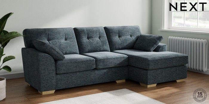 7.2.10 Stamford Buttoned Back Medium Sofa Chaise - Right Hand Chunky Chenille Dark Navy Blue Large Square Angle - Light | Made Click here to use our website with more accessibility support, for example screen readers