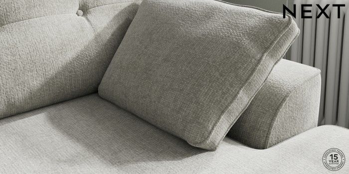 7.2.10 Stamford Buttoned Back Medium Sofa Chaise - Right Hand Chunky Chenille Light Grey Large Square Angle - Chrome Metal | Made Click here to use our website with more accessibility support, for example screen readers