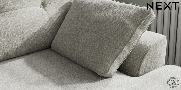 7.2.10 Stamford Buttoned Back Medium Sofa Chaise - Right Hand Chunky Chenille Light Grey Large Square Angle - Gunmetal | Made Click here to use our website with more accessibility support, for example screen readers